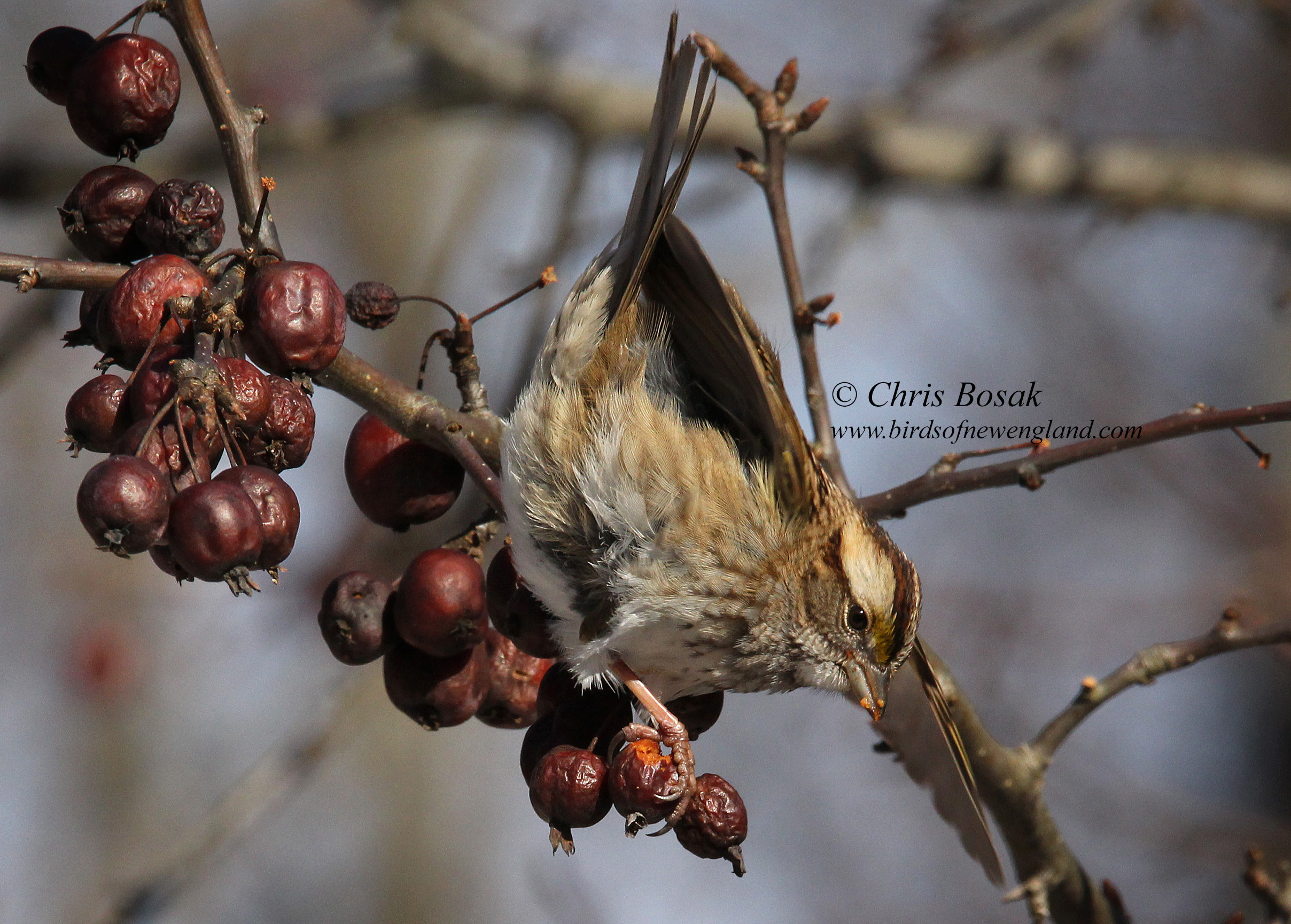 Here are a few more shots of the white-throated sparrow eating crabapples from last month. Here is the original column with the full story.