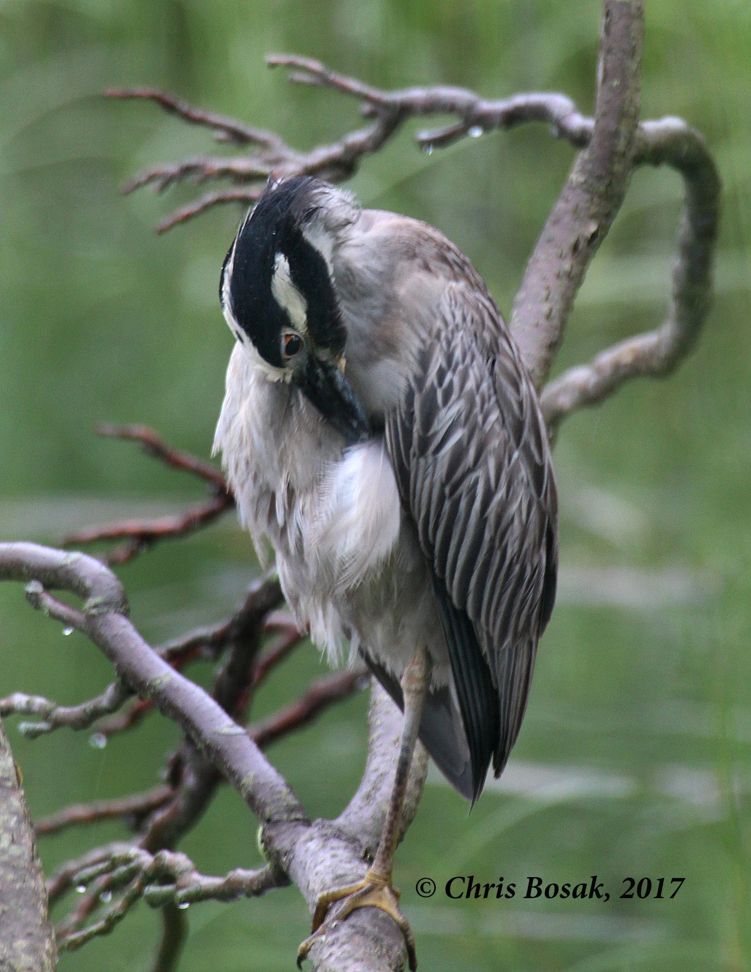 The yellow-crowned night heron resembles the black-crowned night heron (featured a few days ago) with a few differences. The yellow-crowned night heron has a skinnier neck, for one. Just like the great egret may be found on the coast or inland, while the snowy egret tends to hug the coast; black-crowned night herons are more likely to be found away from the coast than yellow-crowned night herons.