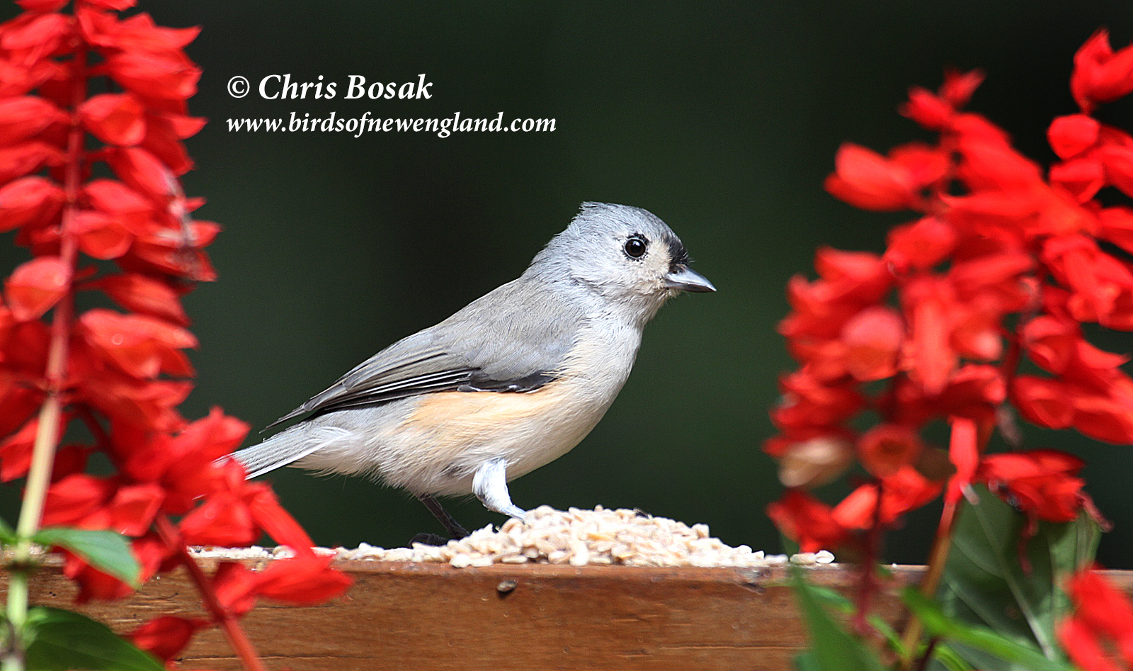 titmouse1c Published September 12, 2020 at 1600 × 947 in titmouse1c Photo by Chris Bosak A tufted titmouse eats sunflower seeds near salvia blooms in New England, September 2020.