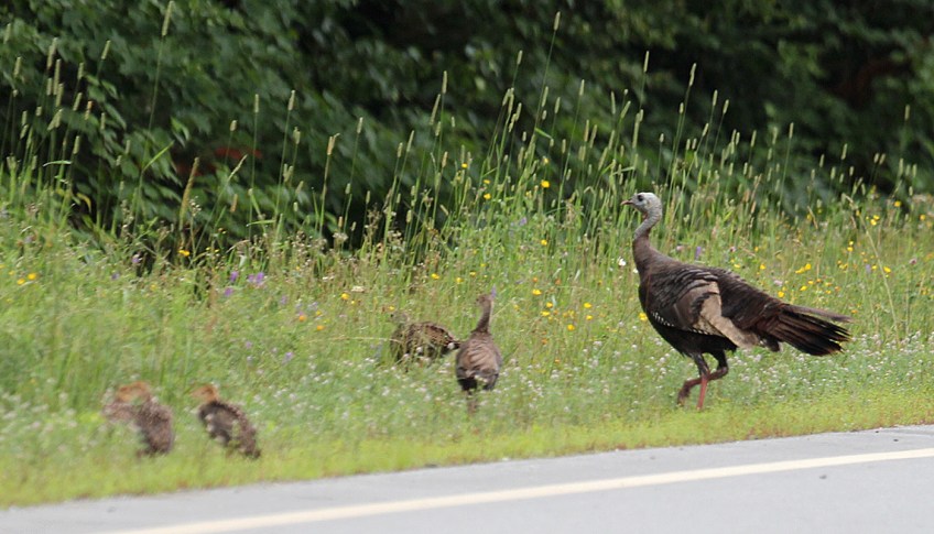 turkey1 Published July 26, 2020 at 1400 × 801 in turkey1 Photo by Chris Bosak A turkey leads her brood across a road in northern New Hampshire, July 2020.