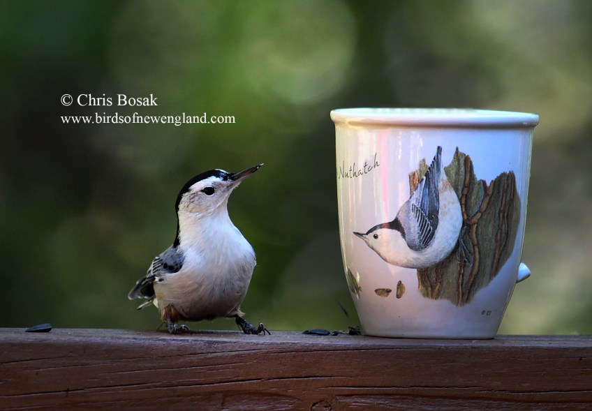 wb-nuthatch-c Published October 15, 2020 at 1800 × 1252 in wb-nuthatch-c Photo by Chris Bosak A white-breasted nuthatch looks to grab a seed from a coffee mug with a white-breasted nuthatch painted on it, New England, fall 2020.