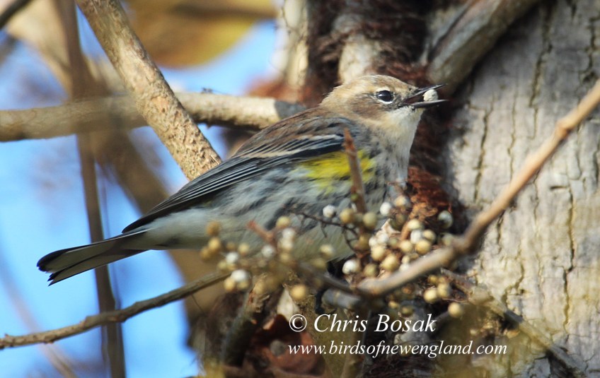 yr warbler berry c Published October 31, 2021 at 1600 × 1010 in yr warbler berry c Photo by Chris Bosak A yellow-rumped warbler eats poison ivy berries in New England, fall 2021.