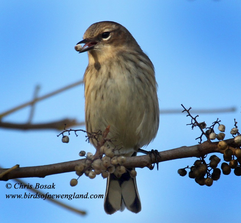 yr warbler berry1c Published October 31, 2021 at 1180 × 1093 in yr warbler berry1c Photo by Chris Bosak A yellow-rumped warbler eats poison ivy berries in New England, fall 2021.